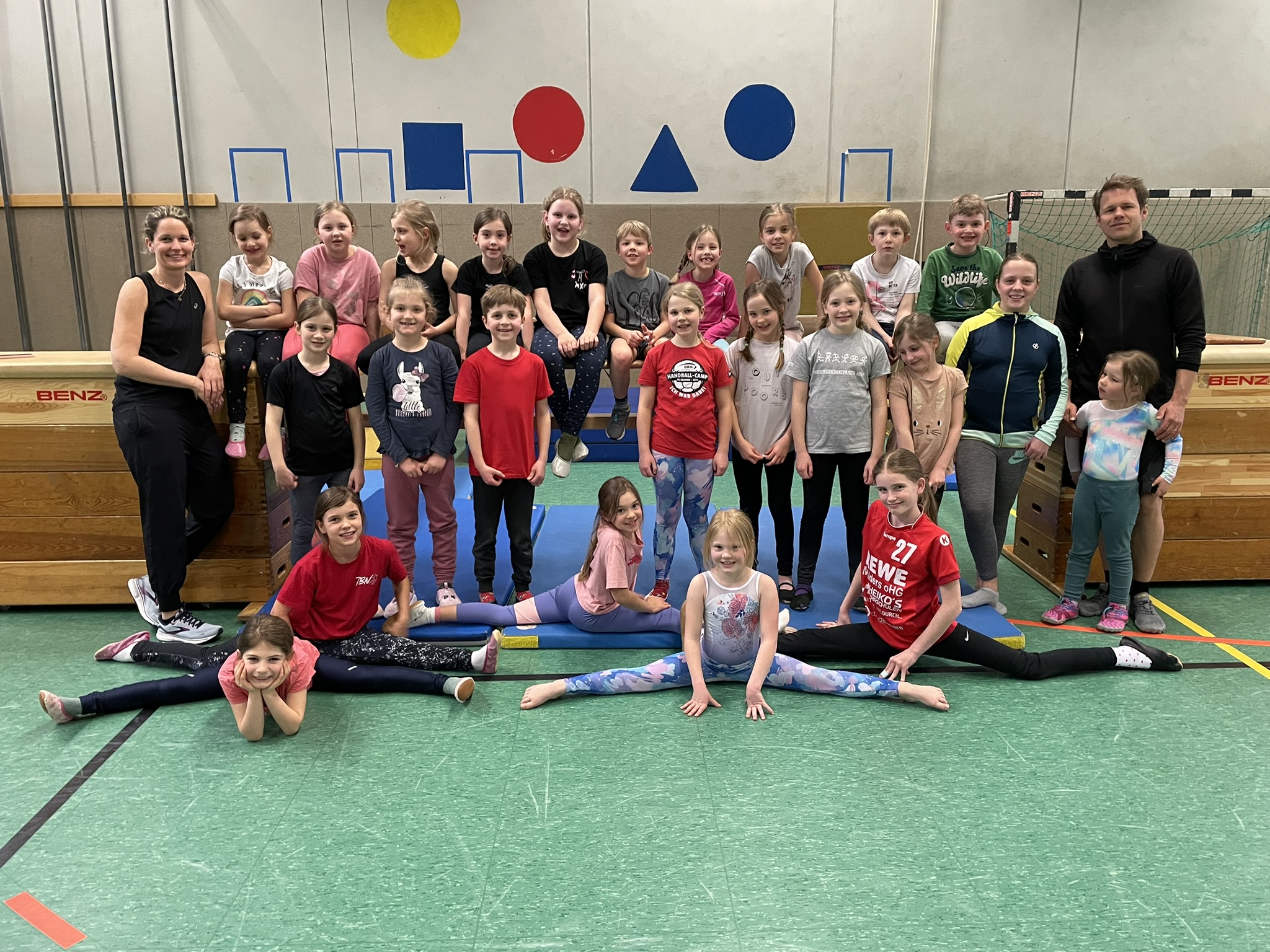 Du findest Turnen out und langweilig? Nicht bei uns. Jeden Montagabend treffen sich viele Mädels und Jungs, die in die 1., 2. oder 3. Klasse gehen, in der städtischen Sporthalle.